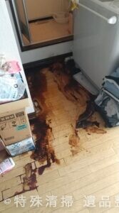 洋室で住人が孤独死し、その後、重度の汚染ともに発見された案件。