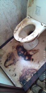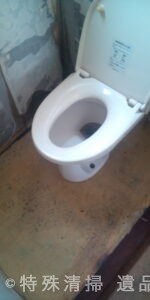 まず、トイレ内の残置物および汚染された床材を撤去し、体液が浸透していた下地部分についても可能な範囲で除去を行った。