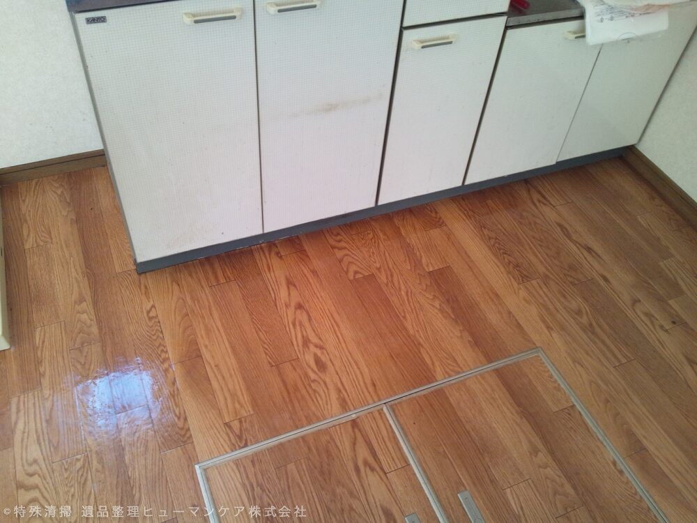 ご依頼時点での状況として、死後推定約1週間が経過しており、発見場所は台所であった。