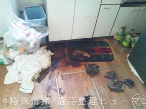 ご依頼時点での状況として、死後推定約1週間が経過しており、発見場所は台所であった。