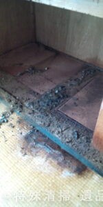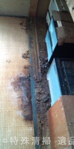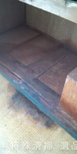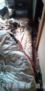 作業前の室内は、布団上で亡くなられていた形跡が確認され、体液が畳から床下にかけて浸透している状態であった。