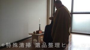 特殊清掃や消毒といった作業は発生しなかったが、室内供養という形でご遺族の精神的な区切りを支援する対応を行った事例である。人が亡くなった現場への対応は、必ずしも清掃作業のみを必要とするものではなく、ご遺族が何を求めているのかを丁寧に確認し、それに応じた対応を行うことが重要であるといえる。