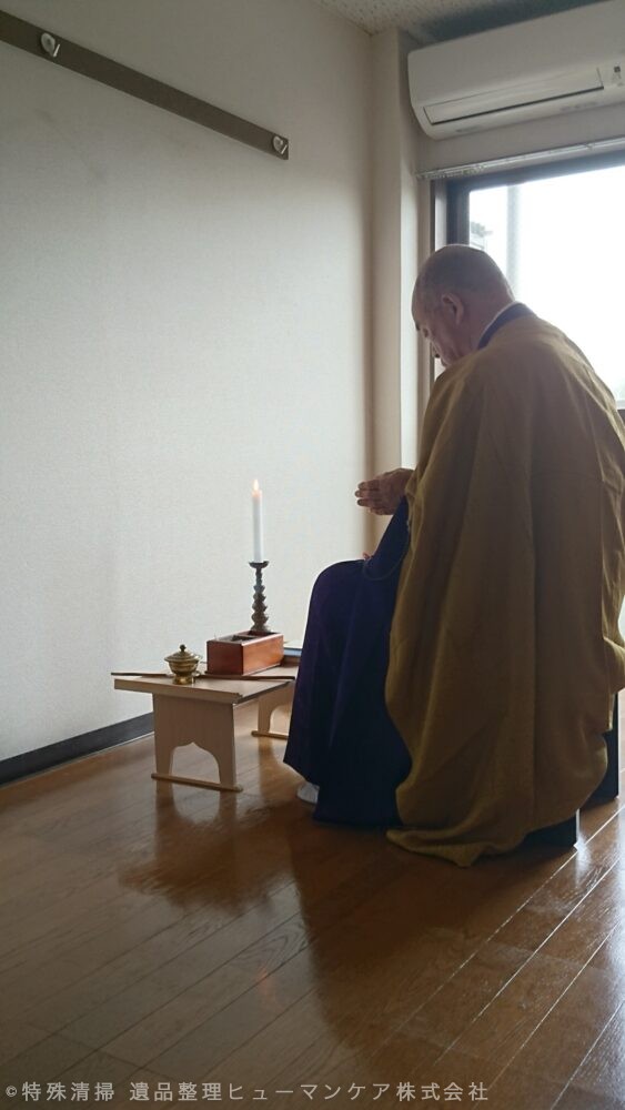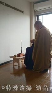 供養については、僧侶を手配し、当該賃貸アパートの室内にて供養式を実施する形とした。日程については、年末の限られた期間での調整となったが、ご遺族の希望を最優先とし、僧侶および管理関係者との調整を行った結果、年内での実施が可能となった。